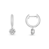 The Luminous Natural Diamond Drop Huggie Earring Small balance two things that rarely coexist so effortlessly — restraint and brilliance. A sleek, polished 18K white gold huggie sits close to the ear with quiet confidence, while a single round brilliant-cut diamond suspended beneath it catches every movement, every glance, every light in the room.